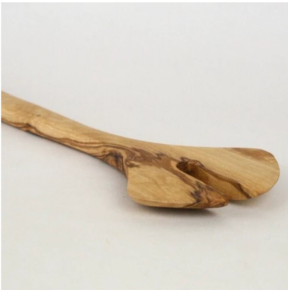 自然なテイストが人気のオリーブの木のイチョウ型のヘラです。木目の美しさはもちろん、穴あきなので炒め物やパスタをゆでるときに便利です。食検済みなので安心してご使用になれます。 手作り品のため、木目、サイズはひとつひとつ微妙に異なります。オリーブの木の特長は、硬くて丈夫、木目が美しくキッチンや食器などに使われてきました。こちらの商品は剪定された枝や老木も利用して製作されています。表面にオイルを塗布することで、ヒビ・割れを防ぐことができます。